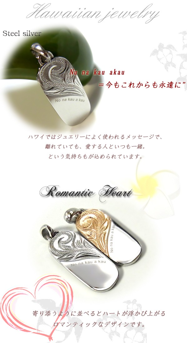 ハワイでは愛する人から想いを込めてハワイアンジュエリーを贈る習慣があります★ハワイ語のメッセージで「Nu na kau akau」(今日もこれからも永遠に)という文字を刻んでいます。
