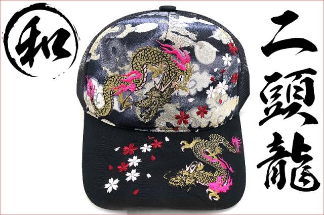 帽子88黒 和柄ちりめんキャップ 龍 桜 刺繍 メッシュ縮緬悪羅悪羅系オラオラ系 ヤンキーチンピラちょい悪ヤクザ メンナク 悪党の店 バースジャパン BIRTHJAPAN