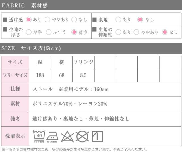 | サイズ | (約)全長188cm・幅68cm・フリンジ8.5cm |