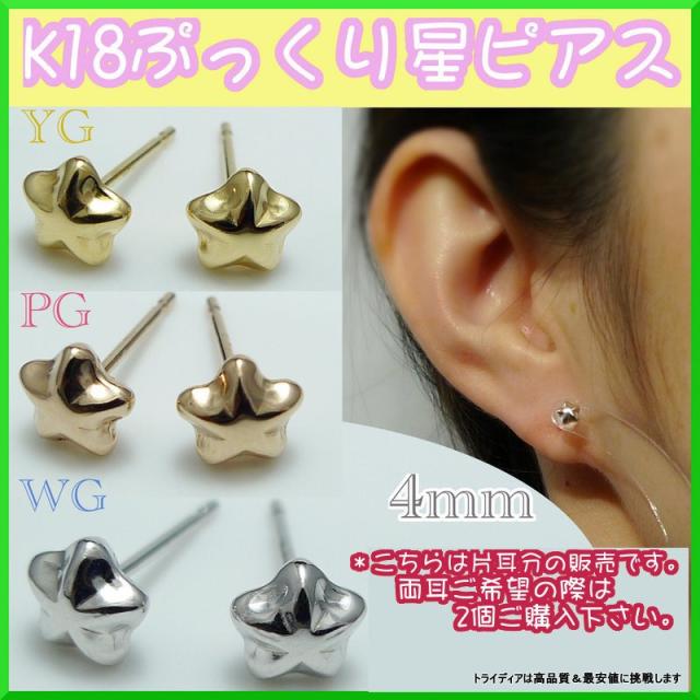 選べる18金 18k 星 スター ピアス k18 片耳 4mm イエロー ピンク ホワイト ゴールド レディース K18 刻印 スターピアス 18k