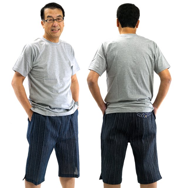 父の日 甚平 素材 の ショートパンツ シャレテコ ステテコ メンズ 綿100%(コットン100%) リラックス ウエアー 甚平素材 が 暑い 夏