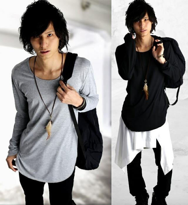 ロング丈 tシャツ 長袖 メンズ 無地 薄手 Tシャツ ロングtシャツ ロンt ながそで クルーネック ビッグt ゆるtシャツ 細身 タイト s m l ll xlメンズ トップス レディース カットソー インナー ロング f370-f372