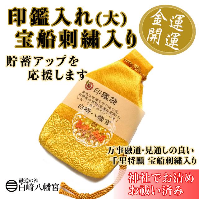 金運・財運 印鑑入れお守り(大) 実印サイズ 万事融通・見通しの良い千里将願帆宝船刺繍入り 神社で祈願・祓い清め済み