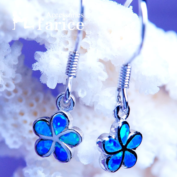 一輪プルメリア ブルーオパール装飾フラワー レディース ハワイアンジュエリー シルバー925 フックピアス【花/7mm幅】