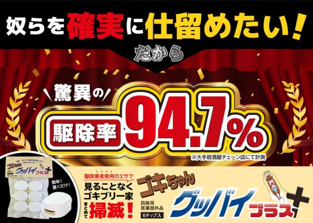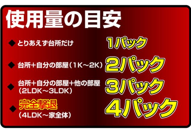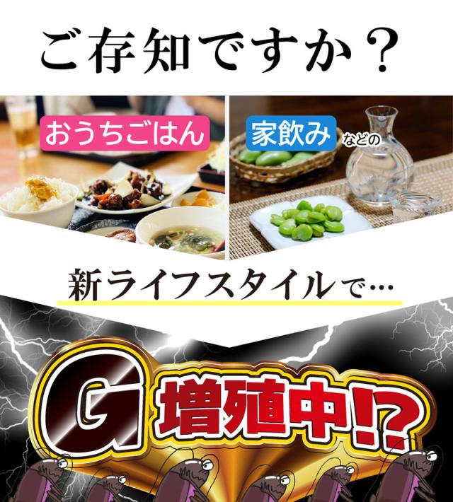 | 商品説明 | 大ヒット「ゴキちゃんグッバイ」が全面リニューアル! お客様の声を元に新たな要素をプラスしました ★パッケージリニューアル ★プロが伝授!「効果的なオススメ設置ポイント」解説書つき (※パッケージ裏面を開くと展開します) ★冷蔵庫の裏や壁沿いなど、 高いところの設置にも便利な専用両面テープを改良! ホテル・飲食店などのG対策のプロの経験が生んだ 家庭用サイズの本格派! 置くだけでいつの間にかいなくなる!? こだわりの真空パック ゴキブリ好みの「半生&おいしい」駆除剤! おいしいから食べる食べる \→食べて勝手に自滅!←/ ▼設置の目安▼ 1パック:キッチン/2パック:1K〜2K 3パック:2K〜3DK/4パック:4LDK〜 |