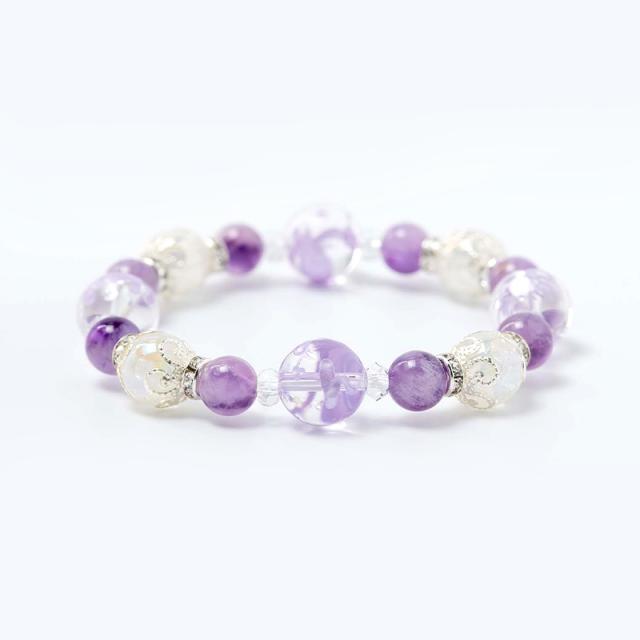風水四神獣12mmm紫箔水晶ブレスレット パワーストーン ラベンダーアメジスト/神社で祈願済み/メンズ/レディース/サイズ調整可
