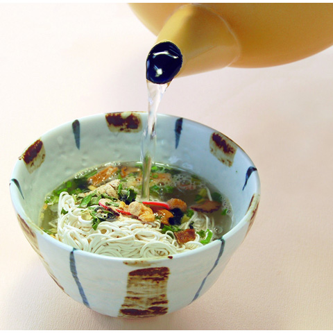 フリーズドライ した素麺は3分待っていただくだけでまるでゆがきたてのような食感。