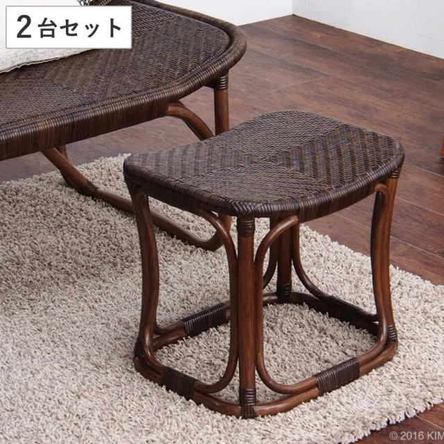 籐 スツール 座面高40cm 2台セット ラタン家具 WAHOO ( 椅子 座椅子 ラタン 籐製 アジアン 家具 2台 オットマン 足置き イス 座いす )