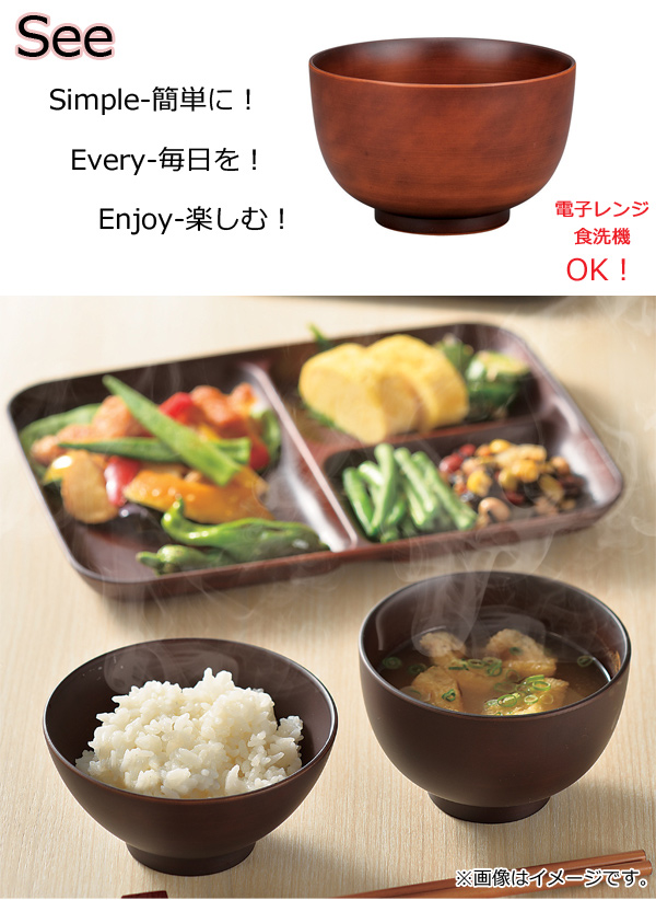 ●電子レンジ・家庭用食洗機対応、傷が付きにくい丈夫で便利な合成漆器です。