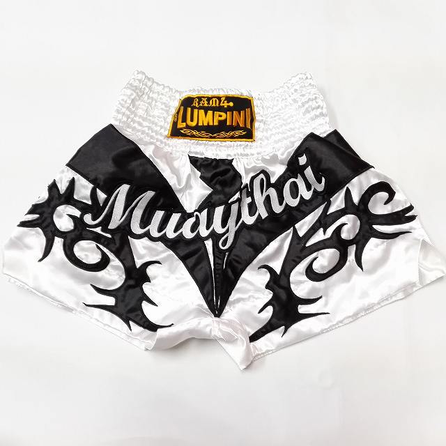 新品 サテン 37 LUMPINI ボクシング パンツ S/M/L/XL 選択 白V黒 /ムエタイ/トランクス/通販/大人/キッズ/ジュニア/子供