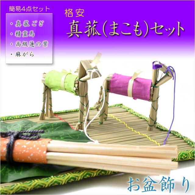 お盆飾り【格安・真菰(まこも)4点セット】お盆用品 精霊馬 しょうりょううま 新盆 初盆 盆棚 牛馬 仏壇 仏具 麻がら 迎え火 送り火