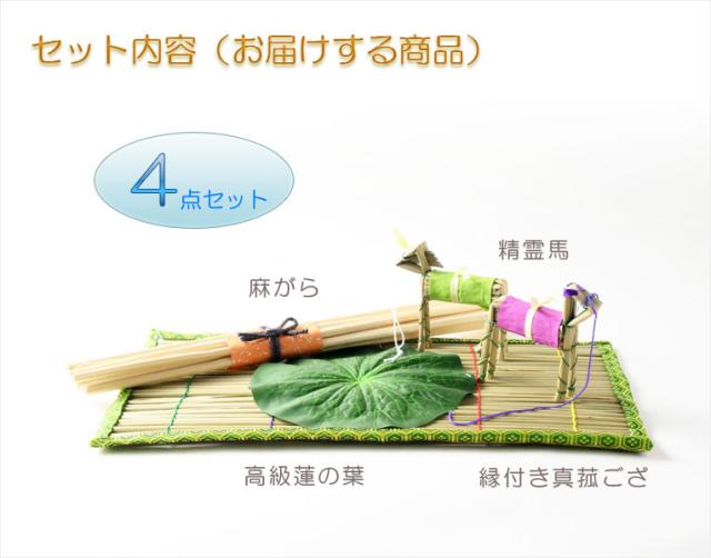「まこもセット」は、まこもござ・蓮の葉・麻がら・精霊馬が