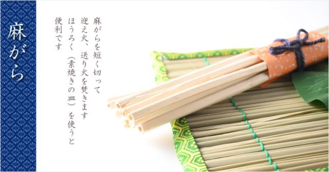 ・麻がら:ほうろくなどのお皿の上で迎え火、送り火を焚きます