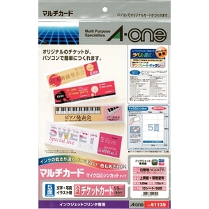 エーワン パソコンで手作りチケット インクジェットプリンタ専用紙 51139(エ-ワン)返品種別A