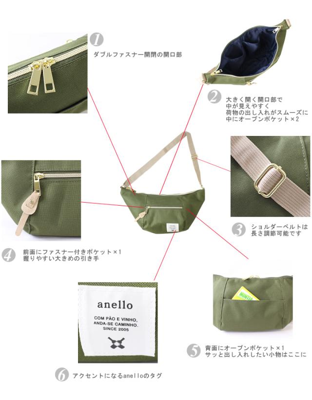 anello ボディバッグ アネロ ショルダーバッグ レディース バナナ型 斜め掛けバッグ ウエストポーチ 軽量 スタイルオンバック【全5色】【b0192】