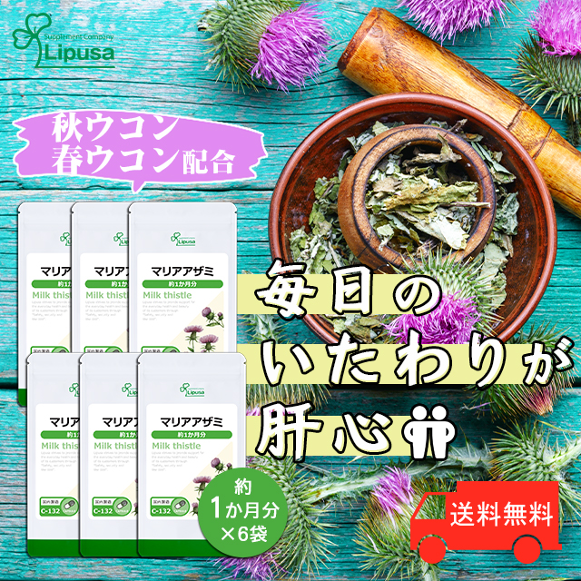 マリアアザミ 約1か月分×6袋 C-132-6 (90カプセル×6袋) 送料無料 健康維持 シリマリン サプリ リプサ Lipusa 公式 agesugi_sbe