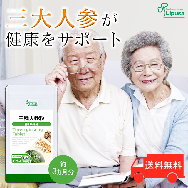 三種人参粒 約3か月分 T-703 (720粒) 送料無料 健康 ヒュウガトウキ 高麗人参 田七人参 サプリ リプサ Lipusa 公式 agesugi_sbe