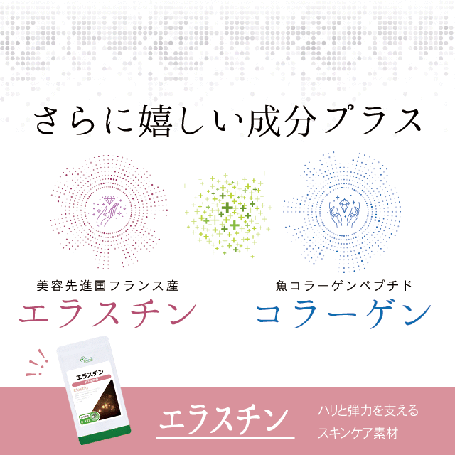 | 原材料 | デキストリン(国内製造)、エラスチン加水分解物(フランス製造)、フィッシュコラーゲンペプチド/ゼラチン |