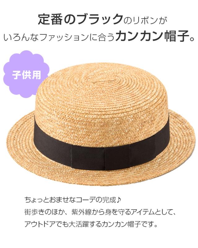 田中帽子 麦わら カンカン帽子 Marin マラン 子供用 UK-H044(子供 帽子 カンカン帽 麦わら帽子 キッズ ハット 日除け 日よけ 田中帽子店 女の子 男の子 夏 人気 親子 ペア お揃い 子供用 かわいい おしゃれ) 即納