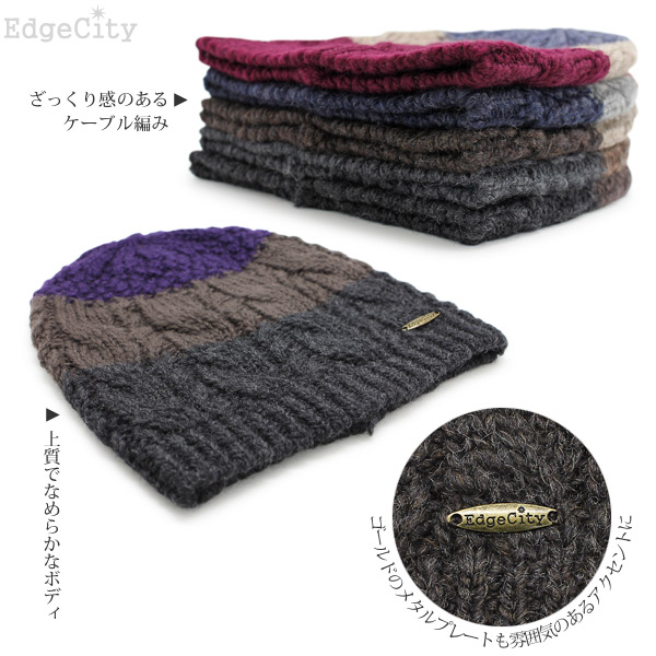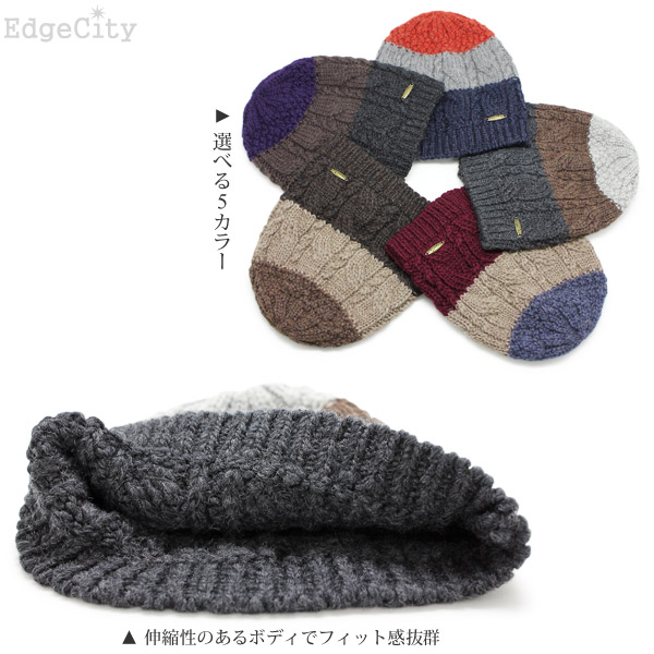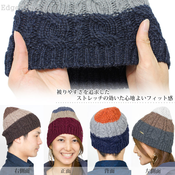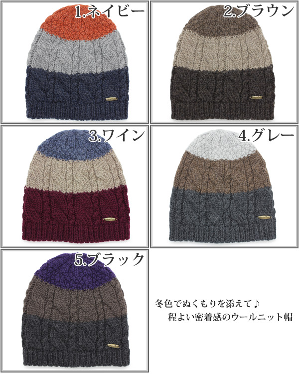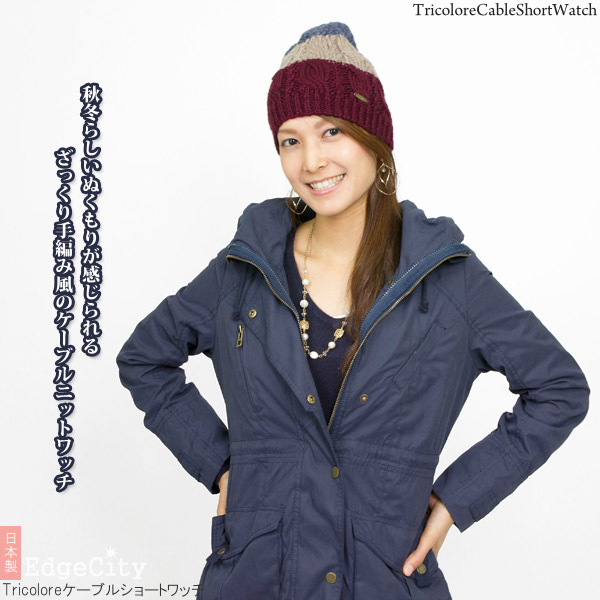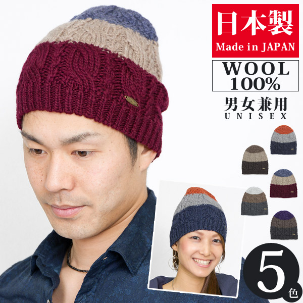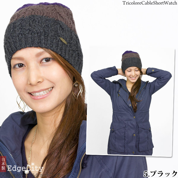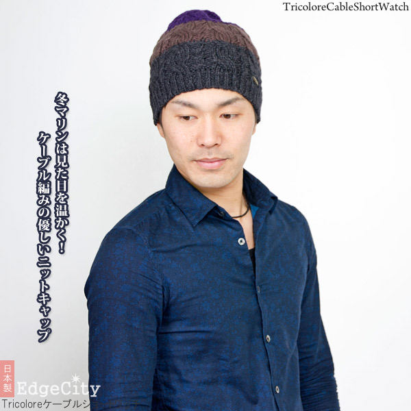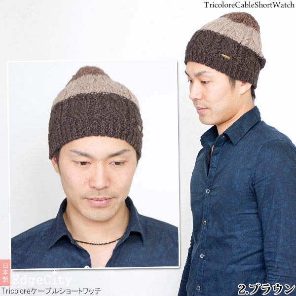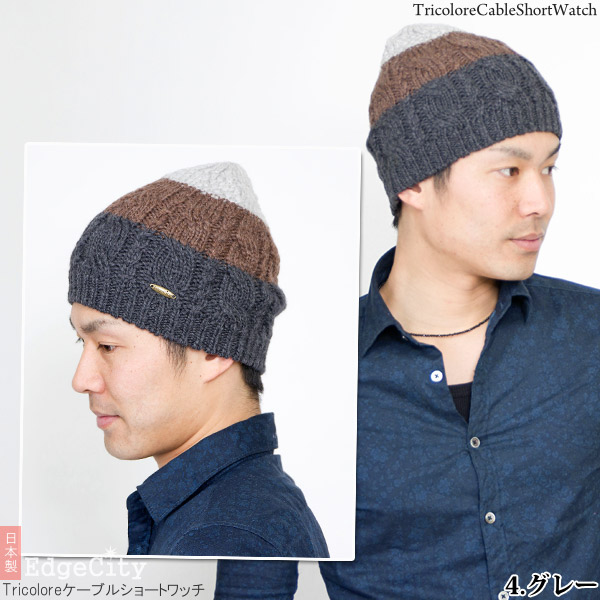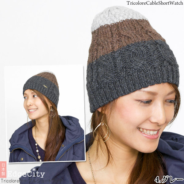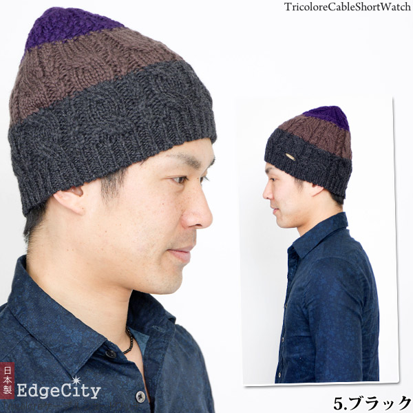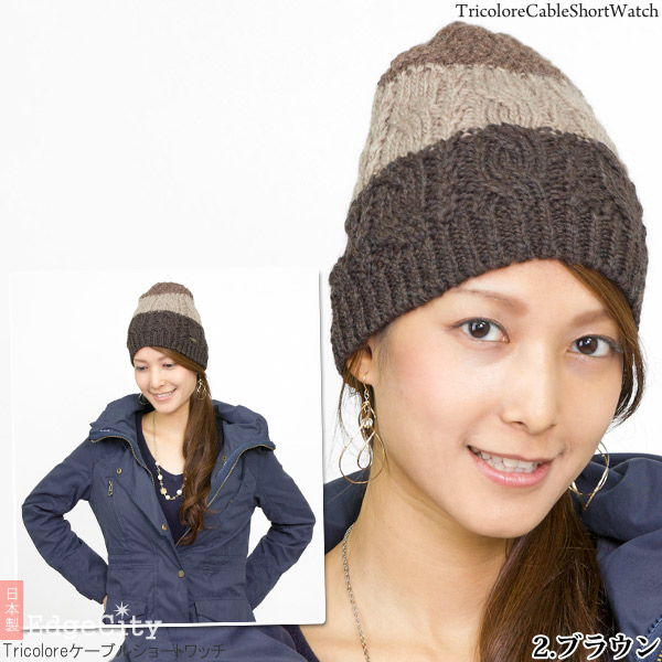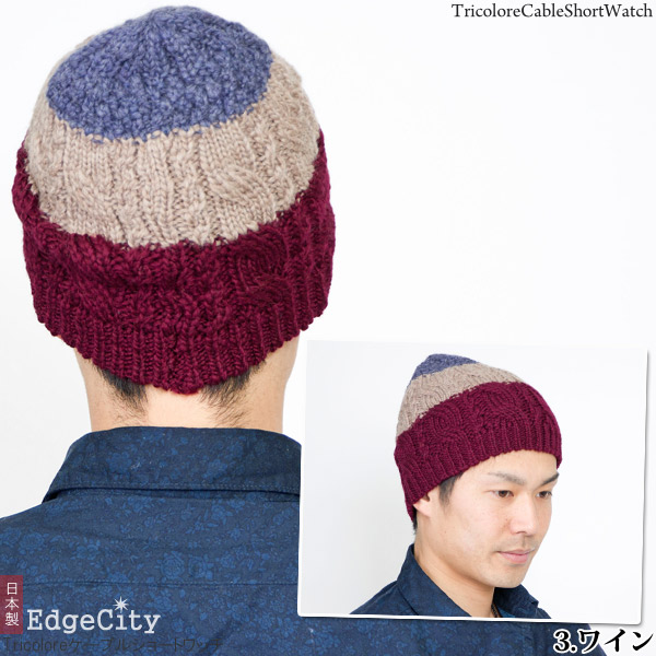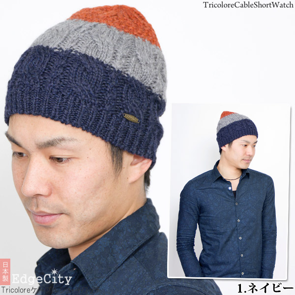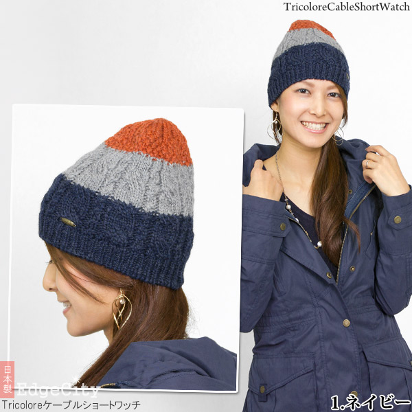 ニット帽 ウール [メール便可] 秋冬 メンズ レディース 帽子 ニットキャップ / Tricoloreケーブルショートワッチ 日本製