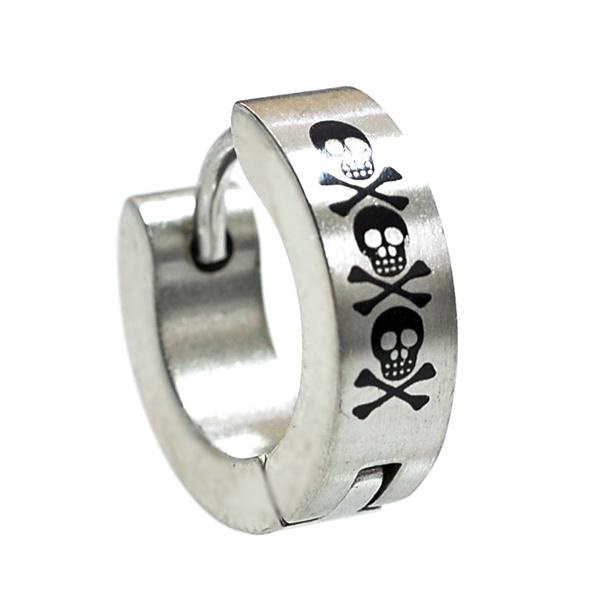 ドクロ/ガイコツ フープピアス/リングピアス【13mm】サージカルステンレス