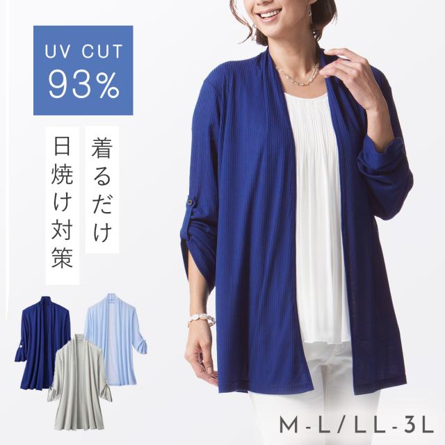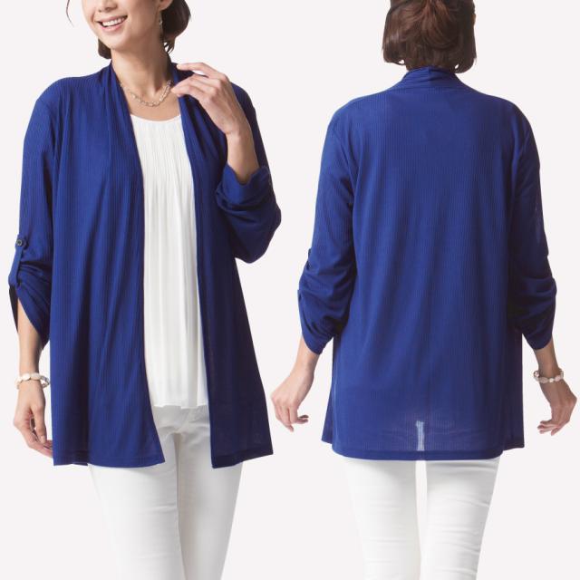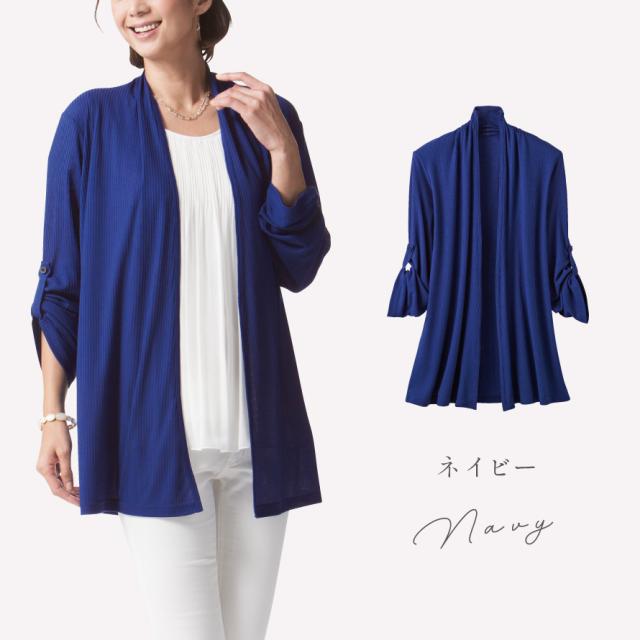 カーディガン レディース 薄手 uvカット 紫外線カット 春夏 長袖 ゆったり 春 夏 涼しい M-L LL-3L 大きいサイズ ゆったり 冷房対策 50代 シワになりにくい きれいめ 体型カバー ロールアップ 風にゆらぐ日よけロールアップカーデ ネイビー ミセス 60代 70代 メール便対応