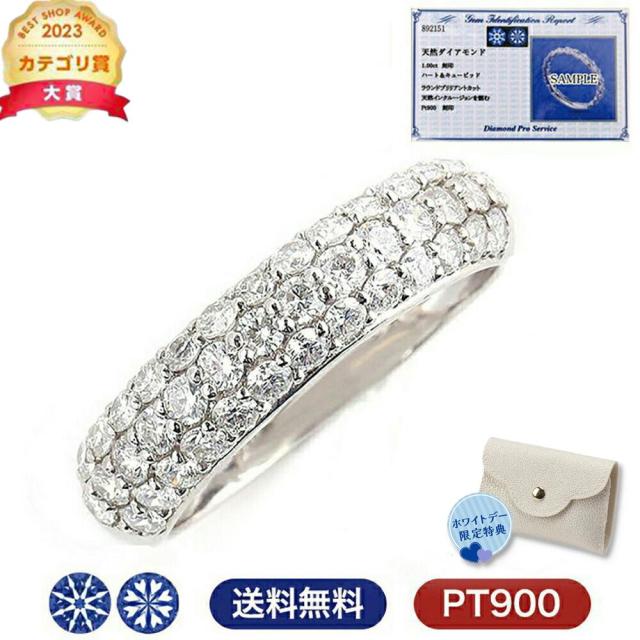 【天然ダイヤモンド×プラチナ】メレダイヤと呼ばれる小粒のダイヤモンドを敷き詰めた華やかなパヴェデザインのボリュームリング。上質なプラチナダイヤモンドリングは女性へのプレゼントにも。【高品質のハート&キューピッドダイヤモンド】ハート&キューピッド(H&C)とは、ダイヤモンドを専用のスコープで見た際、裏面にハート、表面に矢の模様が浮かびあがるものを指します。優れたカットが施されたダイヤモンドにのみ確認できる高品質カットの証です。均一なカットが、取り込んだ光を効率よく反射しダイヤモンドの輝きを最大限に引き出します。【無料ギフト包装】H&Cの8本の矢(キューピット)を実際にご覧頂ける専用スコープ付。プロポーズ・記念日・誕生日プレゼントやホワイトデー・母の日などのプレゼントとしても人気の商品です。