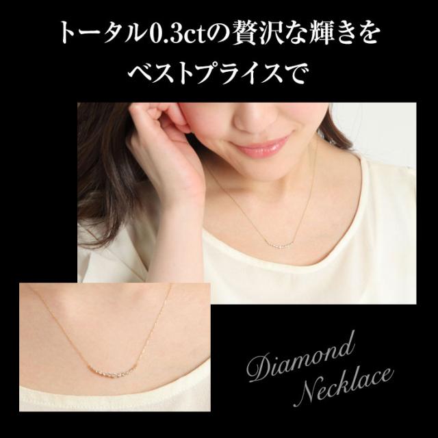 【厳選されたダイアモンド】鑑定士が輝き・テリの良い天然ダイヤを厳選してお届け。シンプルなデザインながら贅沢なダイヤモンドネックレスは、ご自身へのご褒美はもちろん、彼女や妻へのプレゼントなど、特別な贈り物としてもおすすめです。【無料ギフト包装】クリスマス・プロポーズ・誕生日プレゼント・結婚のお祝いや記念日に。またホワイトデー・母の日・出産後のプレゼントに、お嬢様への卒業や入学のお祝いなどのプレゼントとしても人気の商品です。美しいラインを描くグラデーションのダイヤネックレスは、普段使いのカジュアルなスタイルからパーティーシーンまで幅広く活躍してくれます。