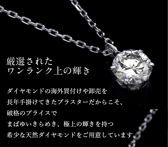 【素材・商品サイズ】ストーン:天然ダイヤモンド 0.2カラット Hカラー SIクラス GOODカット UP【金性】プラチナ PT900 (チェーン PT850)長年ダイヤモンドの海外買付や卸売を手掛けてきたジュエリースタジオ プラスターならではのお得なプライス。送料無料でお届けいたします。