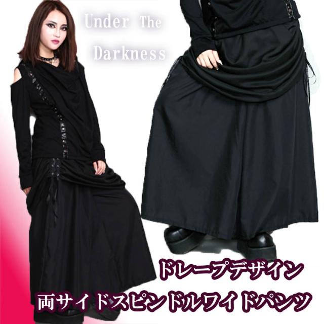 スーパーワイドパンツサルエルドレープサイドスピンドルワイドパンツエレガントシルエット大人かわいいガウチョ編み上げロングスカート風