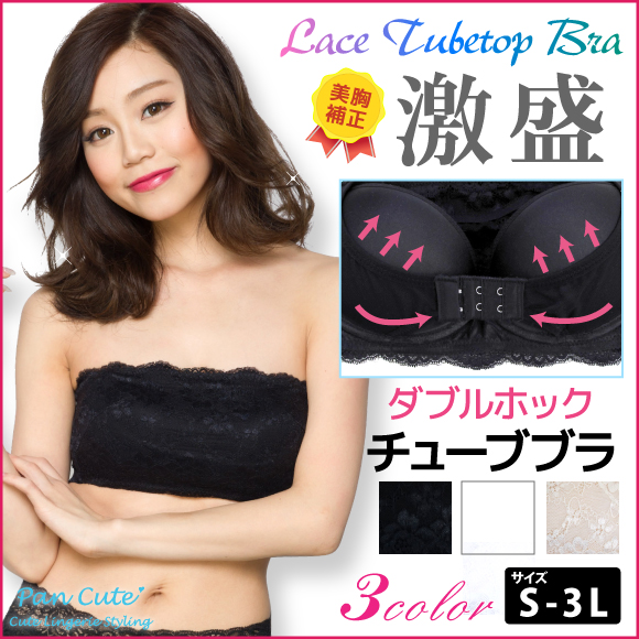 チューブトップ ブラジャー 激盛り ダブルホック! バストアップ 総レース チューブブラ(CT-100) [メール便不可]