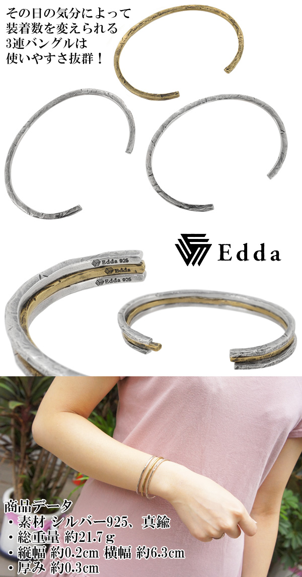 (メンズ バングル/シルバーバングル/ブランド バングル/アンティーク/3連/Edda/エッダ)