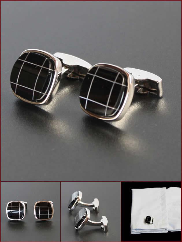 オニキスにラインデザインの入ったカフスボタンをセットにしました。