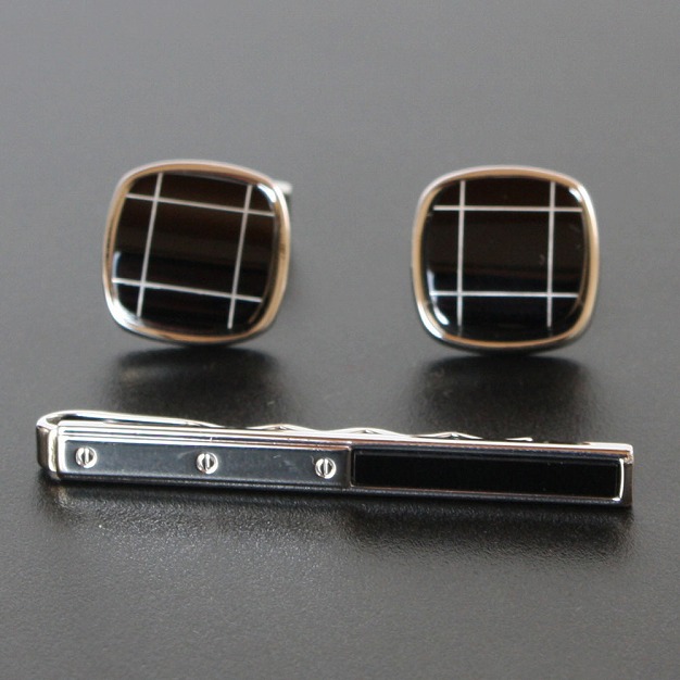 オニキスネクタイピン オニキスシルバーラインカフスセット