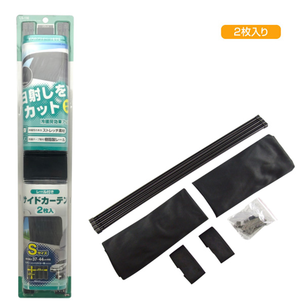 ヤック:スムースカーテン 車 黒 日差しカット Sサイズ 2枚入り /LS-132
