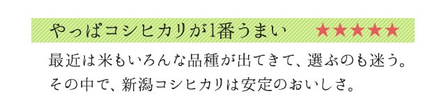 - 色々な産地のコシヒカリがありますが、私はやっぱりこの新潟県産コシヒカリの味が1番好きです。