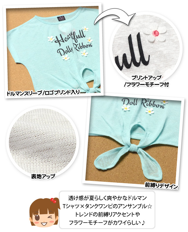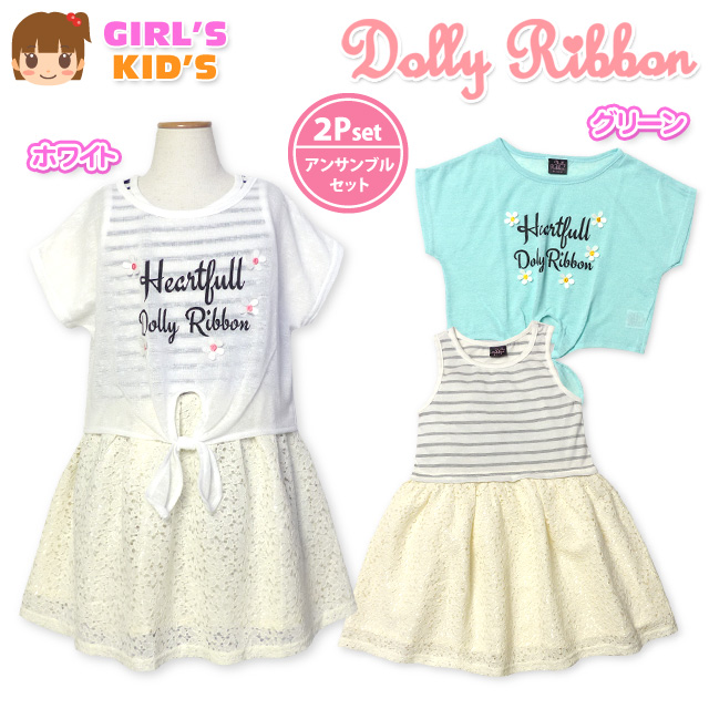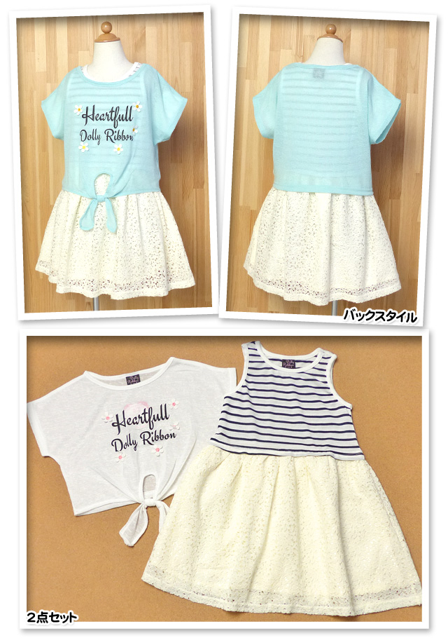 子供服 女の子 タンクワンピース Tシャツ 半袖 Dolly Ribbon ドーリーリボン アンサンブル レーススカート 女児 キッズ