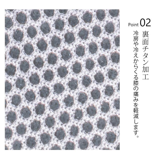スポーツ界で注目のチタンを使用!夏のエアコンや冬の冷えからくる、ひざ関節の保護や保温におすすめ!1年を通してお使いいただける、通年タイプのチタン膝サポーターです。