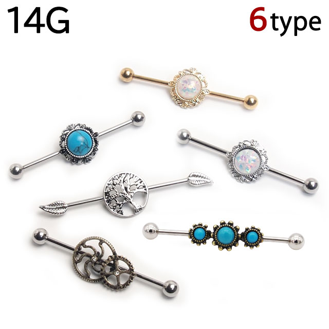 HSP バラエティ インダストリアルストレートバーベル 14G 【 316Lサージカルステンレス ターコイズ ビンテージ ヴィンテージ 】