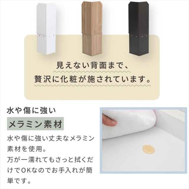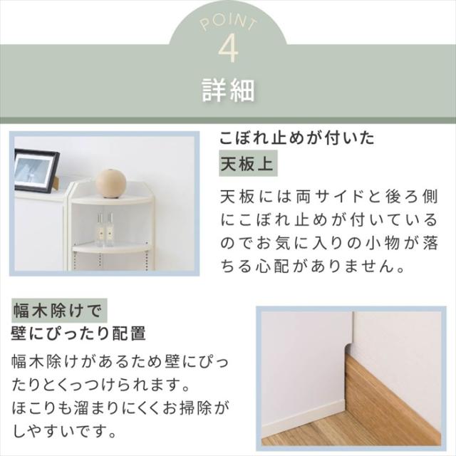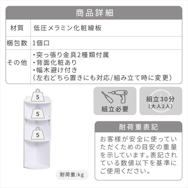 | ・突っ張り金具2種類付属 ・左右どちら置きにも対応 ・幅木避け付き ・背面化粧あり |