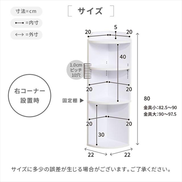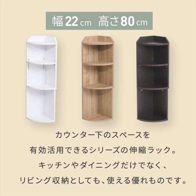 カウンター下収納 薄型 コーナーラック コーナーシェルフ 幅40 奥行22 高さ80 カウンター下 突っ張り ディスプレイラック キッチン 三角 オープン ラック 木製