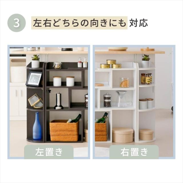 | 組み換えにより左右どちらでも使用可能なラック。 カウンター下使用時には、高さに合わせて2種類の突っ張り棒が付属されているのでしっかり固定可能で薄型でも前倒れの心配もありません。 |
