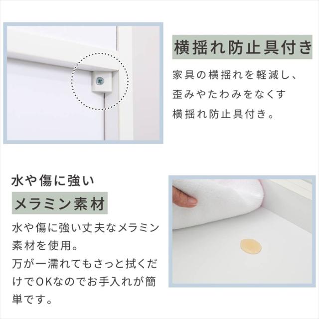 | 収納場所にこまる小物や雑貨のちょっとした収納が可能な扉付き収納。 カウンター下使用時には、高さに合わせて2種類の突っ張り棒が付属されているのでしっかり固定可能で薄型でも前倒れの心配もありません。 |