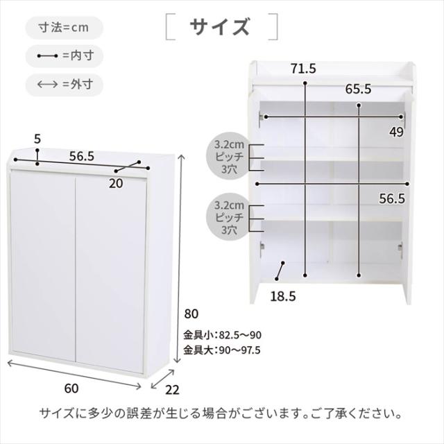 | [外寸] 幅60×奥行22×高さ80cm (金具小使用時)高さ82.5〜90cm (金具大使用時)高さ90〜97.5cm |