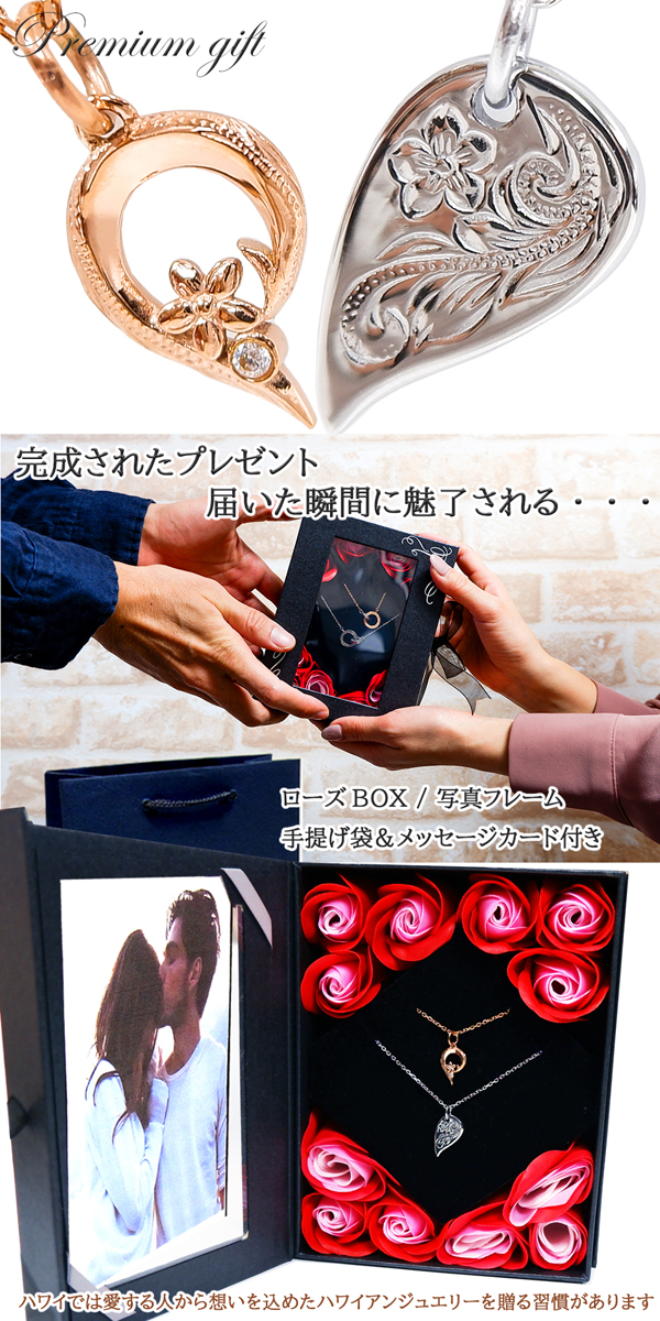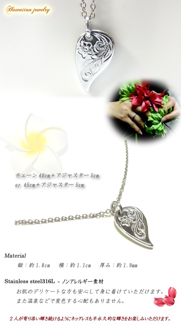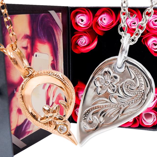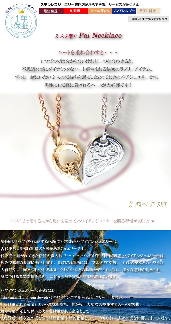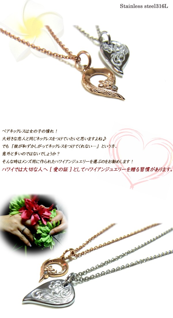 送料無料 刻印無料 ペアハワイアンジュエリー ハート ペアネックレス ピンクゴールド ステンレス BOX付き ラッピング対応 アレルギー対応
