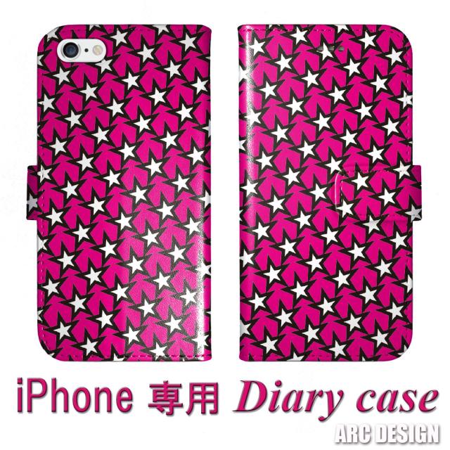 iPhone13 ケース iPhone13 Pro Mini Pro Max 12 11 XS XR 手帳型 全機種対応 スマホケース カバー ハデハデ スター柄 星 ビビットピンク アイフォン SE 第2世代 7 8 Plus 手帳 ケース