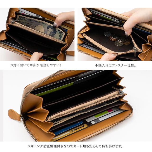 本革 長財布 姫路レザー スキミング防止 財布 メンズ ラウンドファスナー レザー ジッパー サイフ