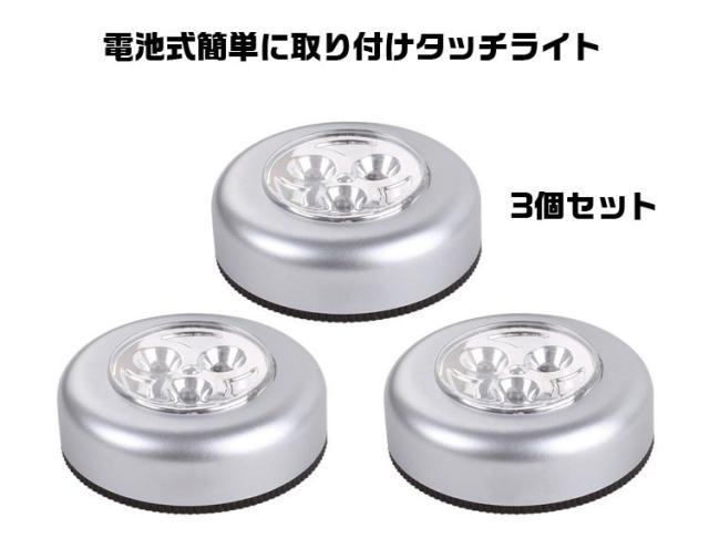 タッチライトどこでも使える 軽くワンプッシュするだけでON/OFF電池式 パックライト3個セット LED3SET