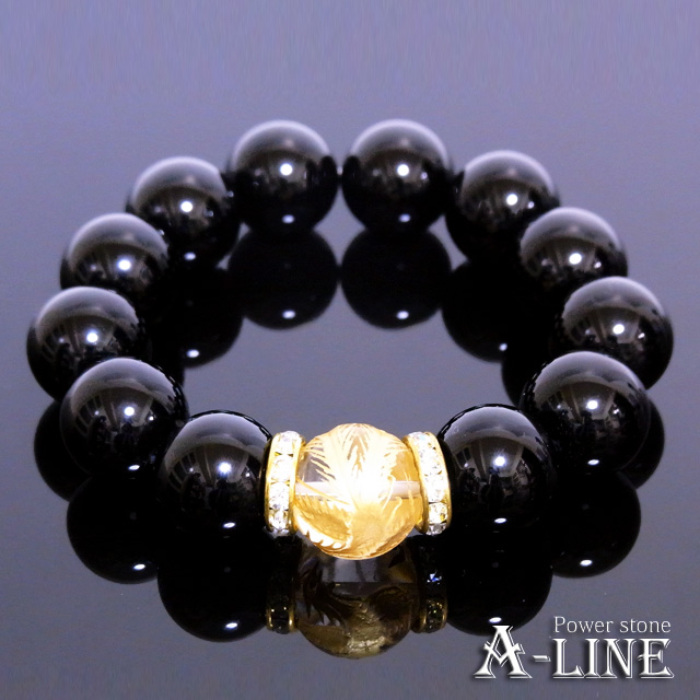 パワーストーン ブレスレット 金運UP 大玉鳳凰金彫り水晶16mm&オニキス16mm PW-2976