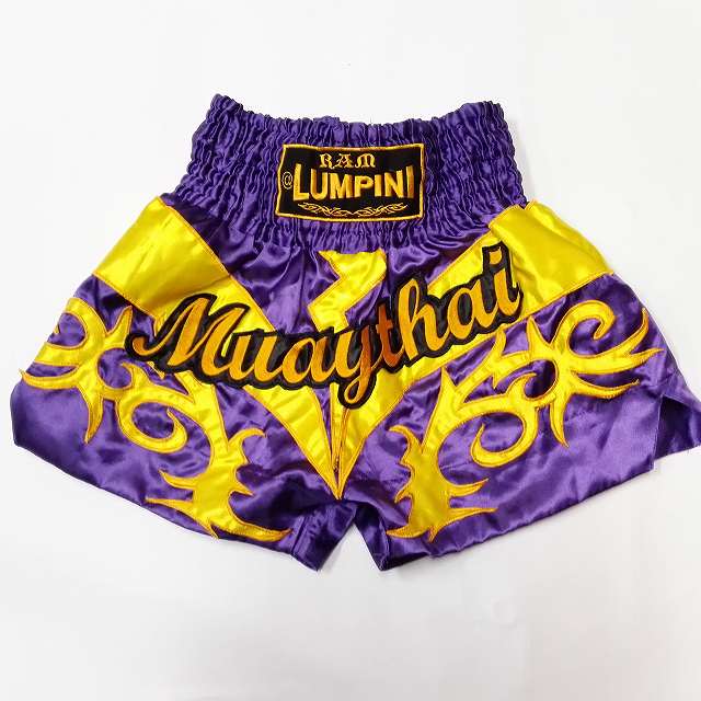新品 サテン 60 LUMPINI ボクシング パンツ S/M/L/XL 選択 紫V黄 /ムエタイ/トランクス/通販/大人/キッズ/ジュニア/子供